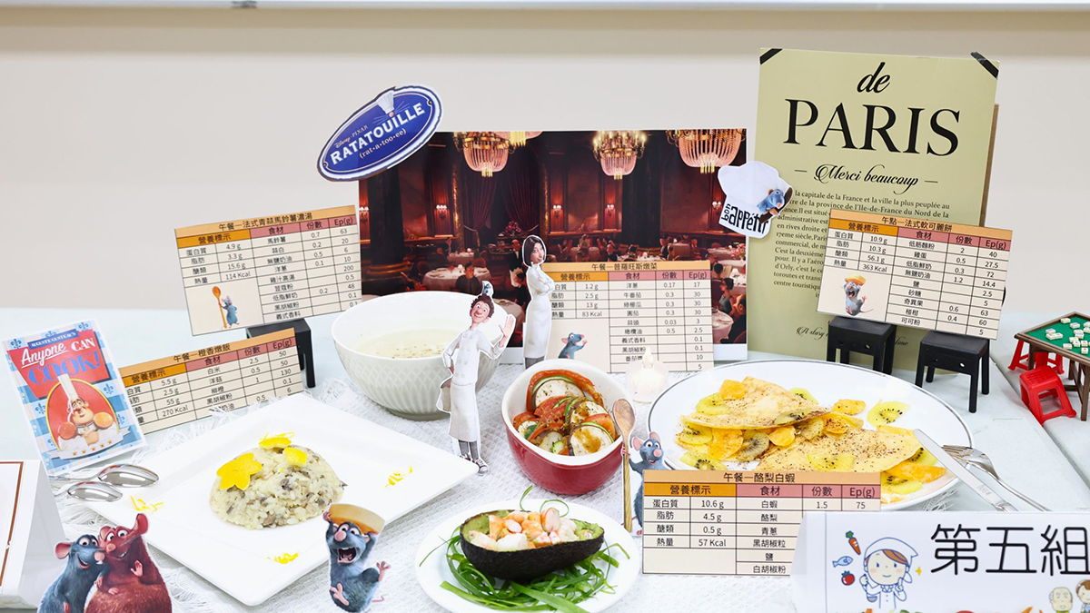 在整體作品呈現上,學生以節慶氛圍、童年記憶與日常生活為靈感,發展出多元且具故事性的高齡友善餐點,涵蓋中式、台式、港式及法式料理風格。作品包括麻油雞肉飯、清燉獅子頭白菜滷、玲瓏如意粽,以及以戲曲歌謠命名的「港都夜雨」海帶鯛魚豆腐煲、「鹿港小鎮」鳳眼糕佐決明子茶等;亦有團隊將法式料理透過燉煮與質地調整,轉化為適合高齡者食用的餐點。學生在設計過程中,除注重飲食安全,也重視色彩搭配、香氣層次與口感表現,力求在軟質飲食中保留「色、香、味」俱全的用餐體驗。