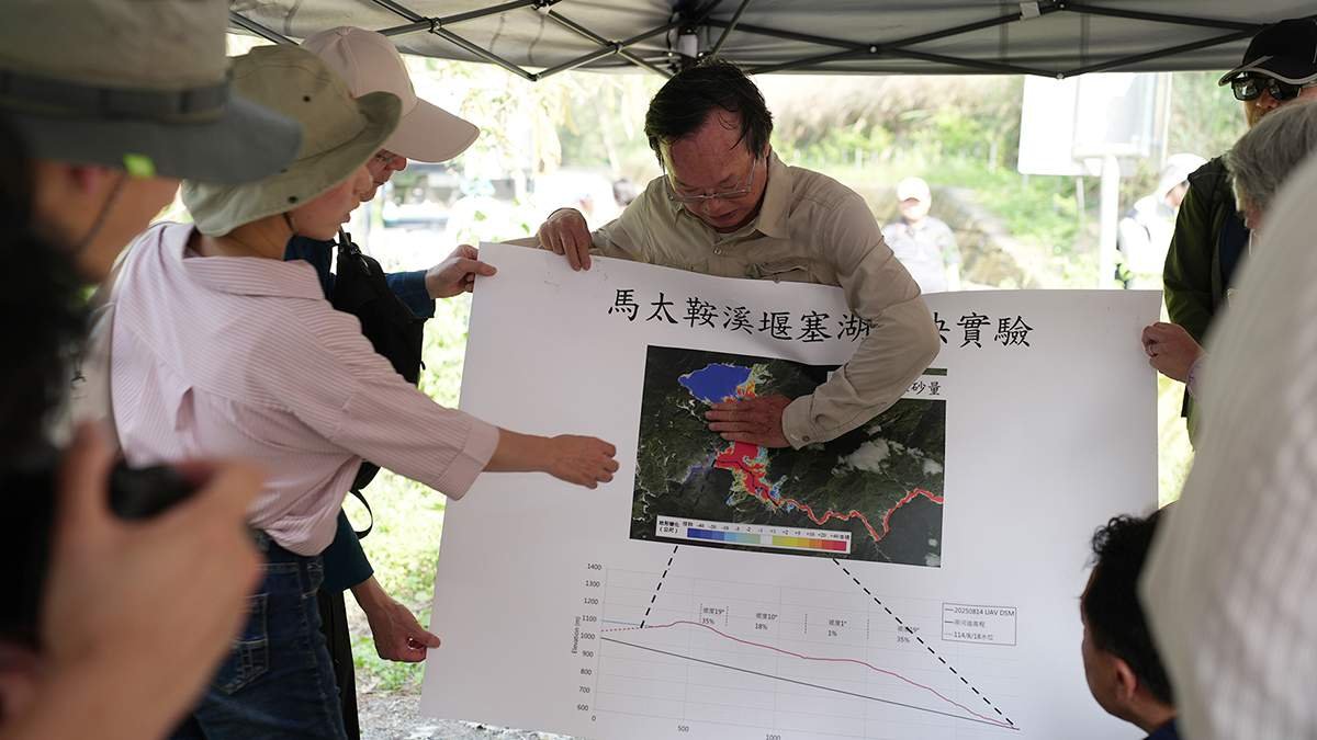 針對2025年馬太鞍溪堰塞湖事件,農業部林業保育署委託研究團隊,並整合國立陽明交通大學、國立成功大學等跨校專家,於4月20日進行1比50縮比物理模型試驗,重建堰塞湖從形成、蓄水到潰決的完整歷程。該堰塞湖壩高約200公尺、堆積量達2億立方公尺,為台灣歷來規模最大案例之一。